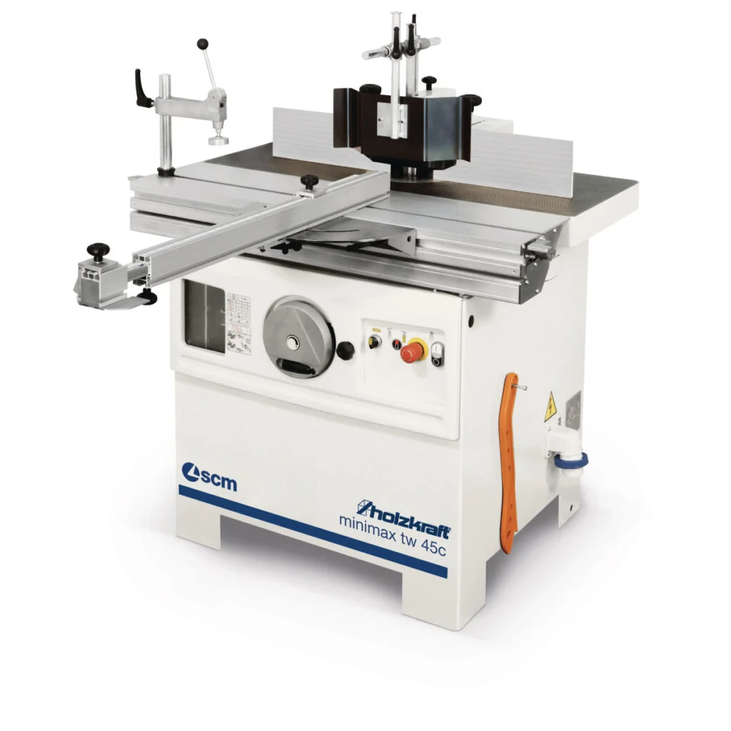 Frezarka stołowa Minimax TW 45C posiada stabilną i solidną konstrukcję. Została wyposażona w aluminiowy wózek jezdny z 10 letnią gwarancją na zużycie prowadnic. Przechylne wrzeciono frezarskie zapewnia precyzyjną obróbkę materiałów. Frezarka została wyposażona w silnik o mocy 5,0 kW, który zapewnia wysoki komfort pracy. Chcesz dowiedzieć się więcej? Zadzwoń do nas lub skontaktuj się z nami przez formularz kontaktowy!