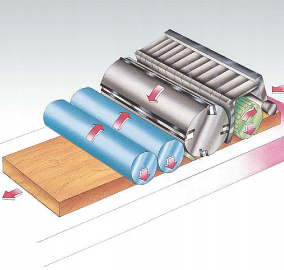 z trzema wałkami o dużej średnicy zamontowanymi na niezależnych