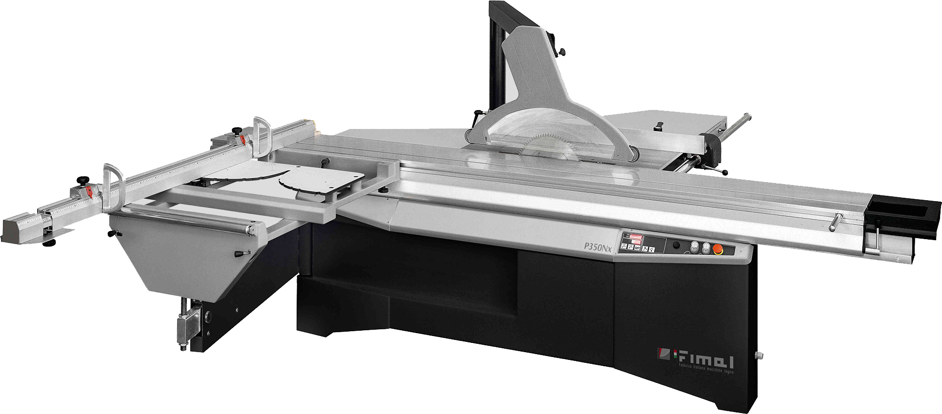 Prowadnica piły, z regulacją mikrometryczną, ślizga się po oszlifowanej stalowej prowadnicy w modelach P350Nx i P350Sx, natomiast w modelu P350Ax ślizga się po aluminiowej prowadnicy na czterech kółkach. Prowadnice można łatwo usunąć ze stołu roboczego, obracając je w razie potrzeby do cięcia duże panele