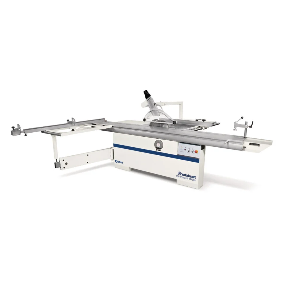 Profesjonalna pilarka formatowa Minimax SI 400ES z aluminiowymy wózkiem jezdnym, idealna do precyzyjnej pracy.
